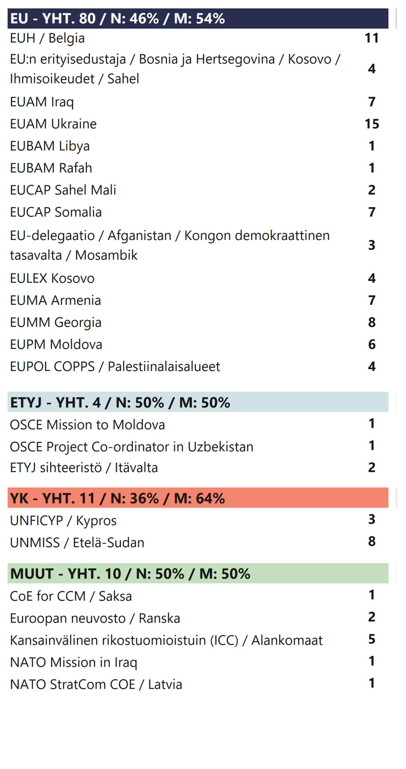 CMC Finlandin lähettämiä siviilikriisinhallinnan asiantuntijoita palvelee EU:n, YK:n, Etyjin, Naton sekä Euroopan Neuvoston toimeenpanemissa siviilikriisinhallintaoperaatioissa sekä sihteeristötehtävissä. Zoomaamalla karttaa lähemmäs, näet kaikki samassa maassa olevat operaatiot ja sihteeristöt.