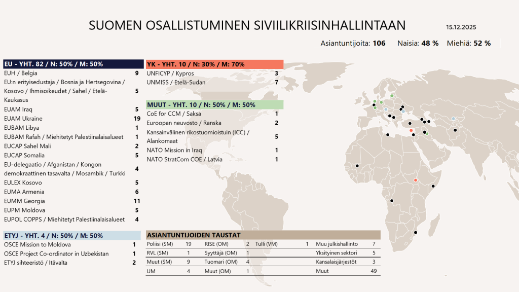 Suomen osallistuminen siviilikriisinhallintaan 15.12.2025