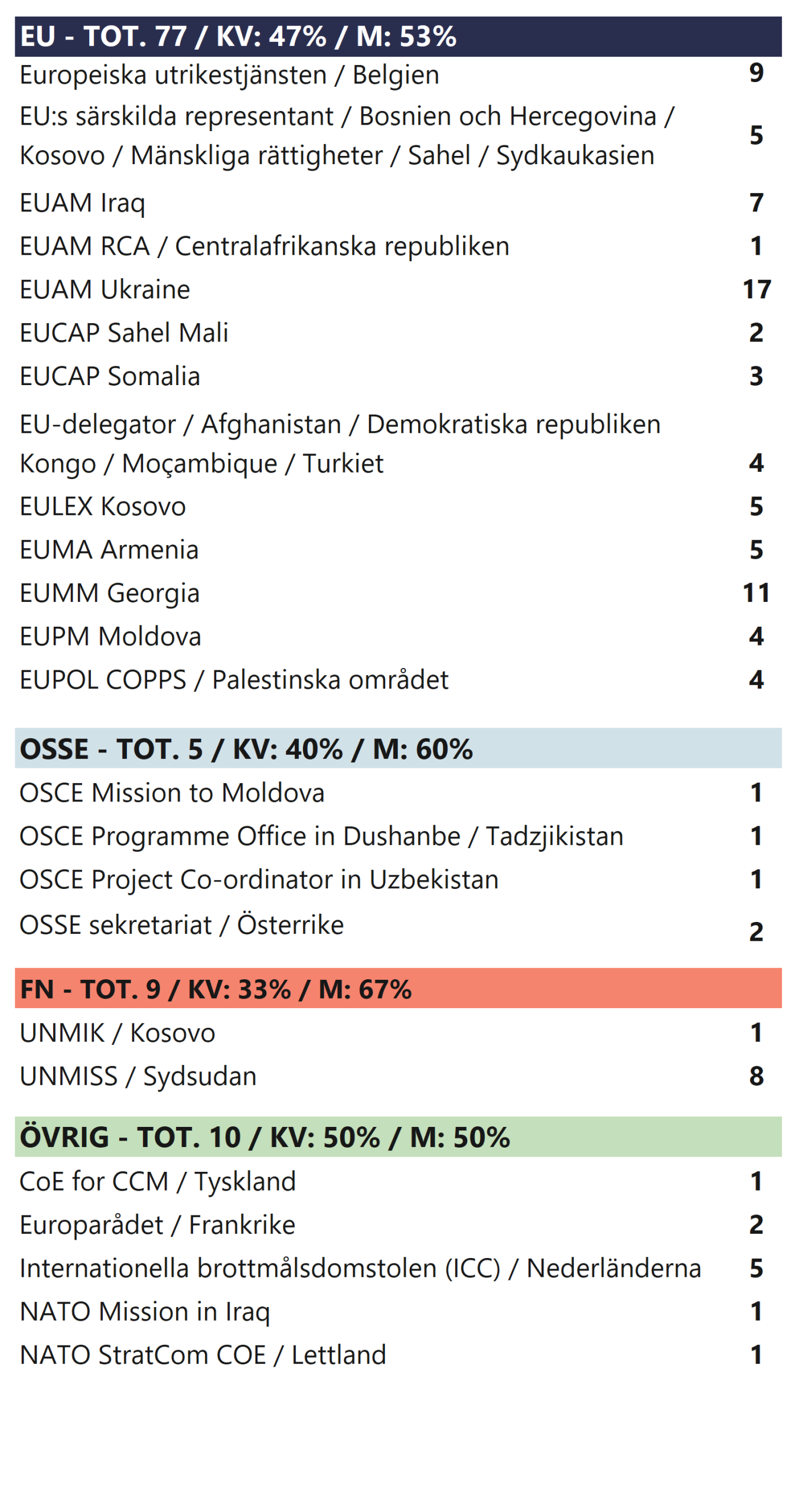 Experter inom civil krishantering som sänts ut av CMC Finland är verksamma i civil krishanteringsuppgifter som verkställs av EU, FN, OSSE, Nato och Europarådet samt i sekretariatsuppgifter.